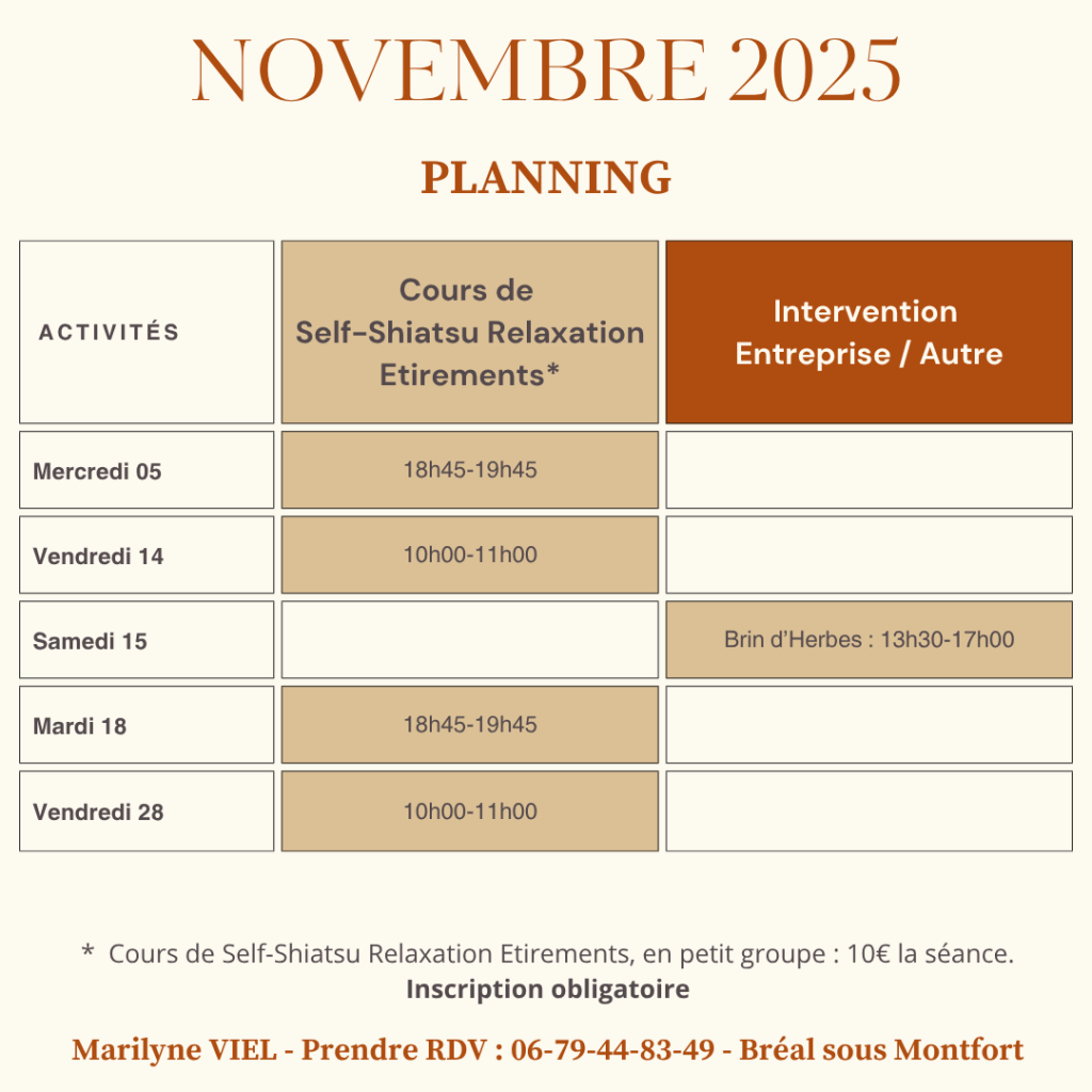 Formée au Shiatsu, au Sokuatsu et à la PNL, j’anime ces ateliers avec attention et bienveillance, en m’adaptant au niveau, à l’énergie et aux besoins du groupe. Chaque séance est conçue comme un moment de reconnexion à soi, dans un cadre simple, apaisant et respectueux.